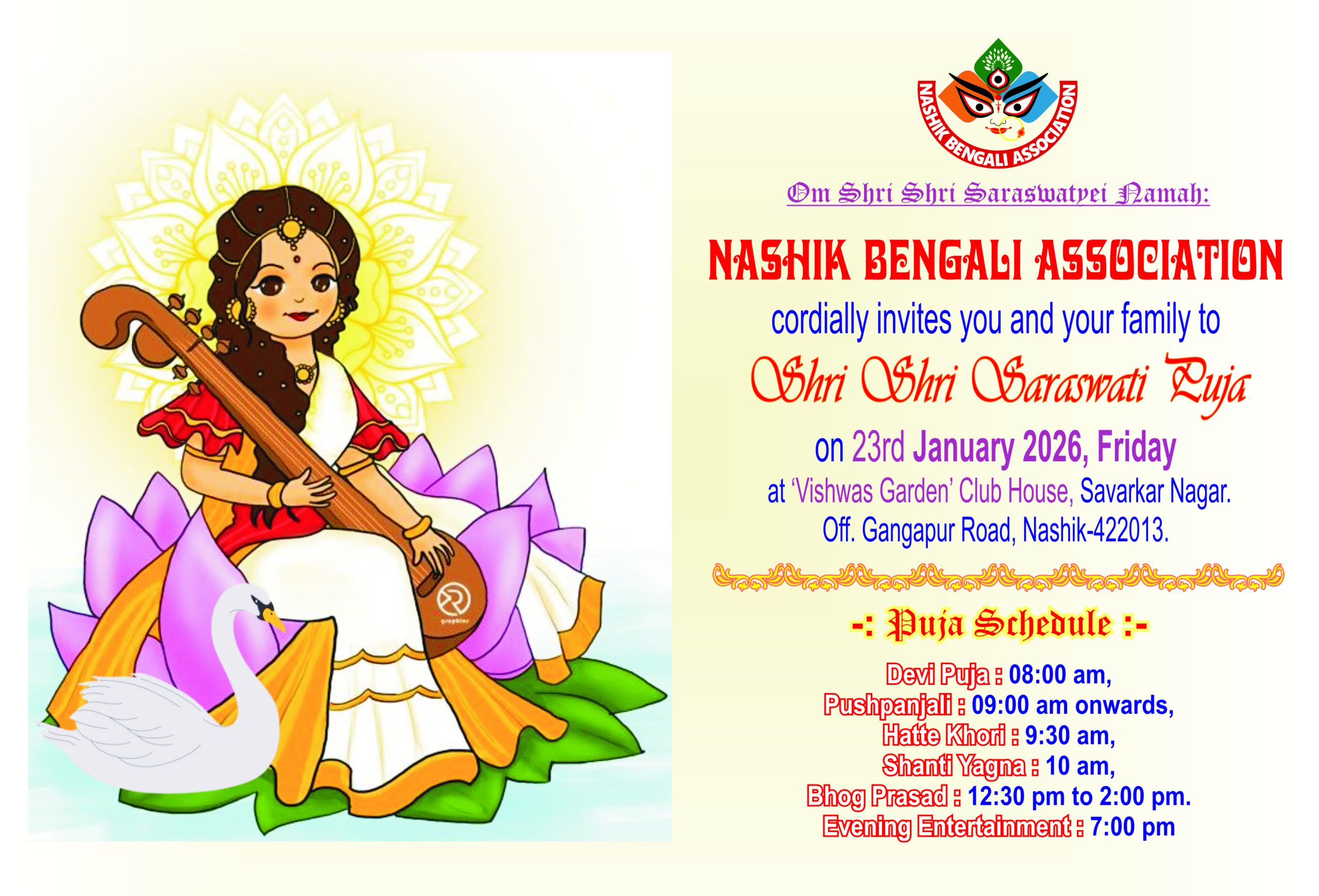 Nashik Bengali Association celebrates Durga Puja Mahotsav, which is one of the signature events in the calendar of activities that Nashik Bengalis intends to organize & celebrate in the month of October. We convey our sincere thanks & gratitude to all Nasikites for their kind & generous cooperation extended to us to form this organization in organizing Durga Puja Mahotsav with fanfare & grandeur.